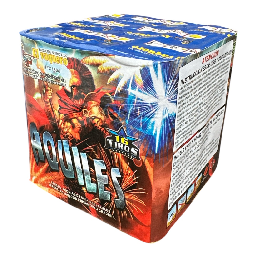 La Torta Dioses Aquiles es una pieza pirotécnica diseñada para transformar cualquier celebración en un espectáculo inolvidable. Con 16 tiros de alta intensidad, ofrece un despliegue único de peonías en colores azul, verde y rojo, acompañadas por el fascinante efecto de crisantemo cracker, que añade destellos chispeantes y un cierre espectacular.