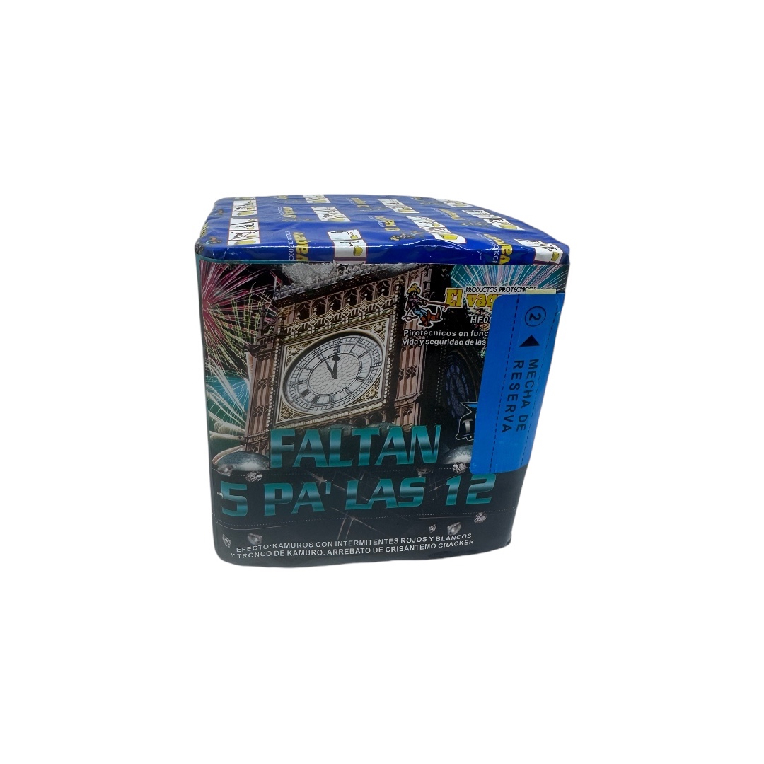 Celebra con estilo y magia las noches más especiales con la Torta 25 tiros Faltan 5 pa’ las 12. Este espectáculo pirotécnico combina elegancia y emoción en cada disparo, ofreciendo un despliegue visual inolvidable que encantará a todos los asistentes.